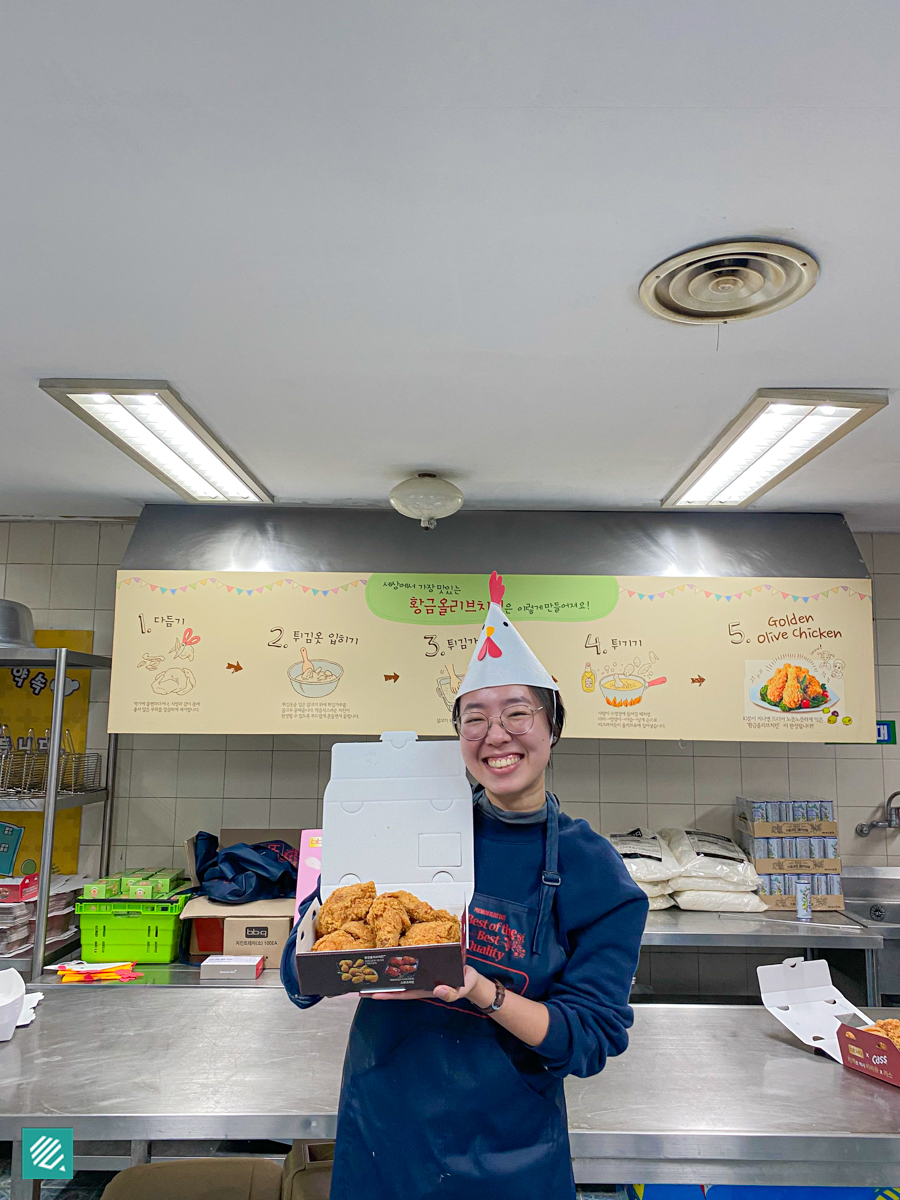 The next activity is the Genesis BBQ Chicken University! The university serves as a training facility for new chefs from the renowned Korean fried chicken brand, BB.Q. Join a fried chicken class to learn how to make their popular Golden Olive Fried Chicken.