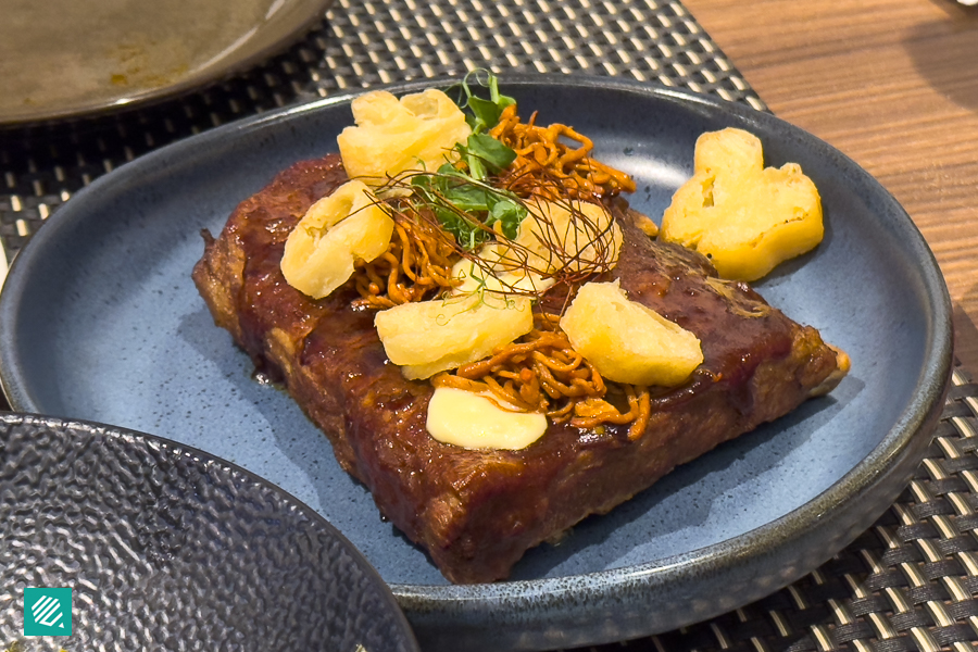 The dish that stood out was the Dry Bak Kut Teh, which featured Binchotan & Orange Wood Grilled Pork Ribs in a herbal broth marination served with cordyceps mushrooms, confit garlic and you tiao. It was almost like an Asian take on the classic Western ribs, along with a nice spin on Bak Kuh Teh.