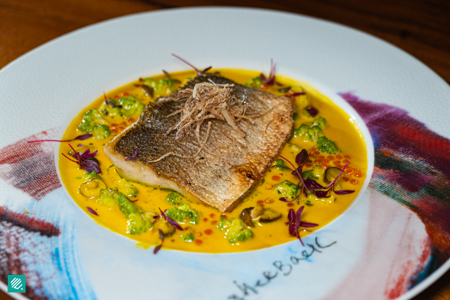 The saffron beurre blanc on the seabass was rich and fragrant, complementing the fine, sweet meat.