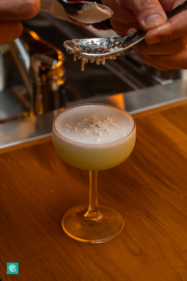 As someone who isn’t the biggest fan of olives, the one served together with the BOP Martini ($23) is a gamechanger. It’s a soy sauce-pickled olive, which goes really nice with the rice-driven martini. The drink echoes the comfort of bap (cooked rice), while the soy sauce-pickled olive acts like a banchan.