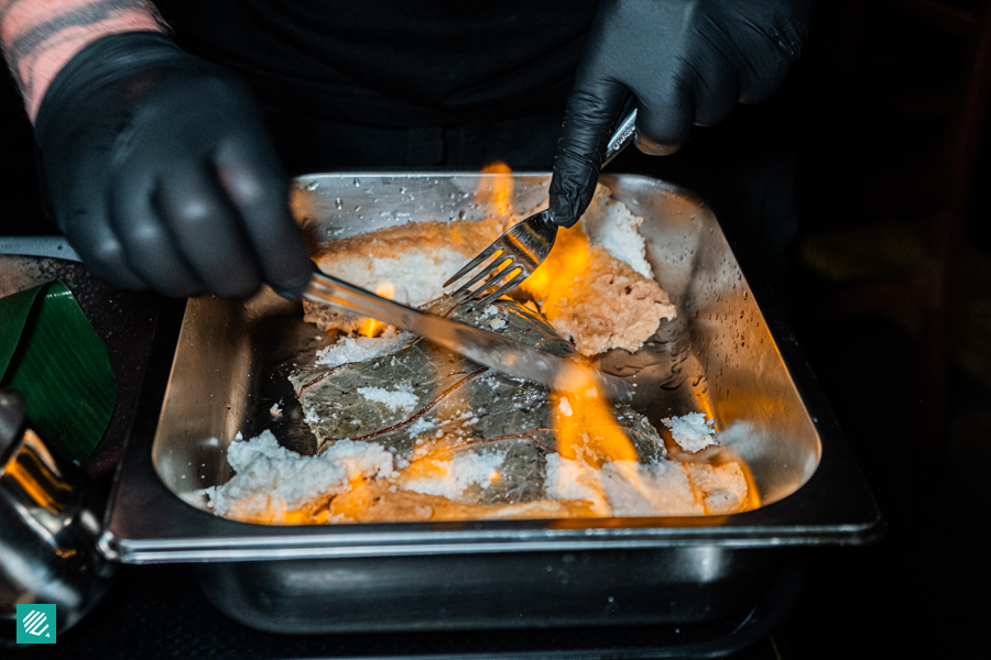 The Salt Baked Hamazhi Collar ($25) collar is baked in a salt crust, which locks in moisture and enhances the natural sweetness of the fish. It was flambed tableside for an extra pizzazz!