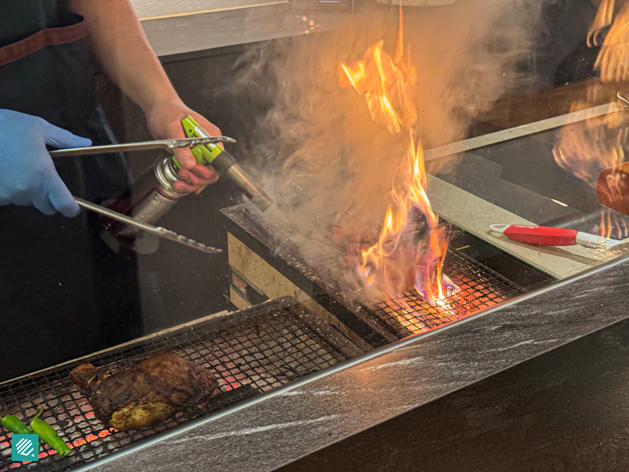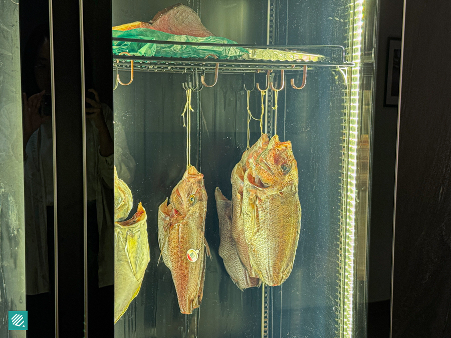 It’s an open kitchen concept where you can watch the chefs prepare the food, including cooking a binchotan grill. They even age their fish in-house!