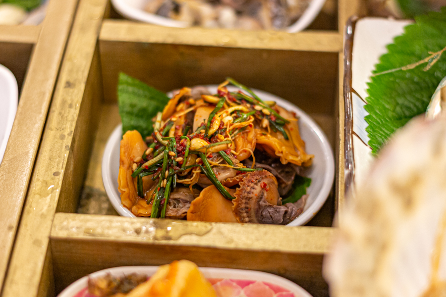 Moving on to the assorted seafood platter, there were items like Sea Cucumber, Octopus, Abalone, and Scallops. We also found a serving of Gwamegi, which is a Korean half-dried Pacific herring or Pacific saury. It’s a winter delicacy that’s popular in areas like Pohang.