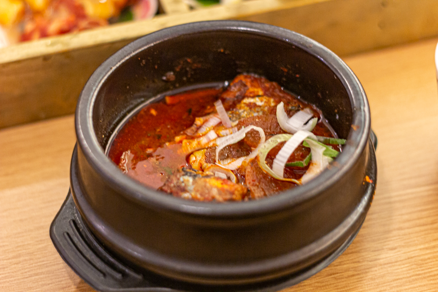 We also ordered a bowl of Mulhoe (Cold Seafood Soup with Raw Fish) before ending the meal with some spicy seafood stew. We loved how refreshing the Mulhoe was. If you’ve never had it, the dish is filled with crunchy vegetables, raw fish, and seafood – an icy, sweet & spicy treat during hot summer days!