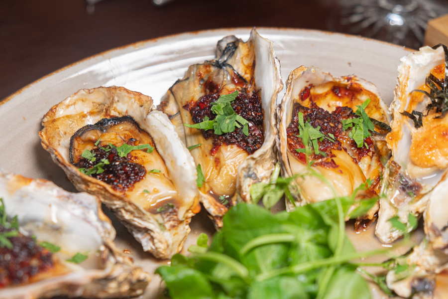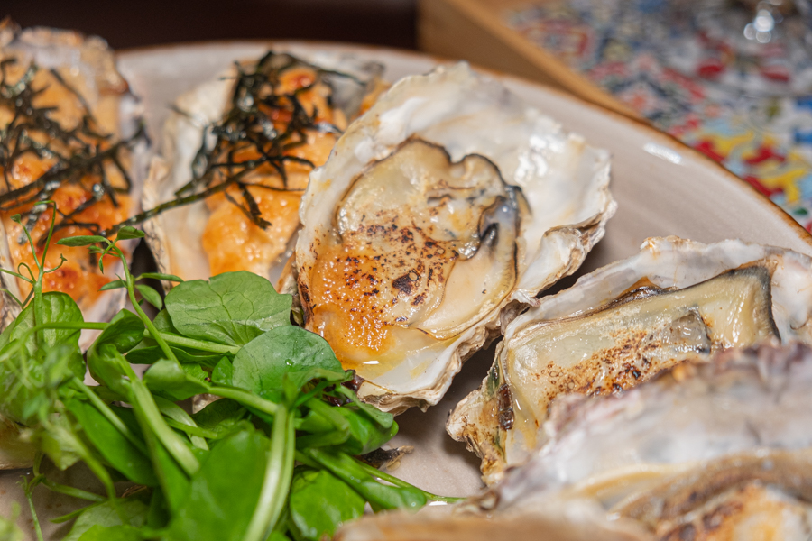 The menu is largely seafood-centric, with a focus on variations of their fresh Japanese oysters. You can enjoy their oysters both cooked and raw with sauces like Salsa and Yuzu Foam, per piece (from $3.50) or by the dozen.