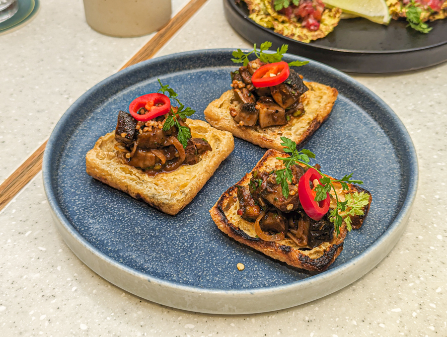 Then there was the Grilled Portobello Mushroom Bruschetta ($12) and Wood Fired Veggies ($12). The bruschetta was a memorable dish, made with a base of crispy grilled tau pok squares. There was a crunch from the tau pok and meatiness from the mushrooms, which was just a tad bit spicy.