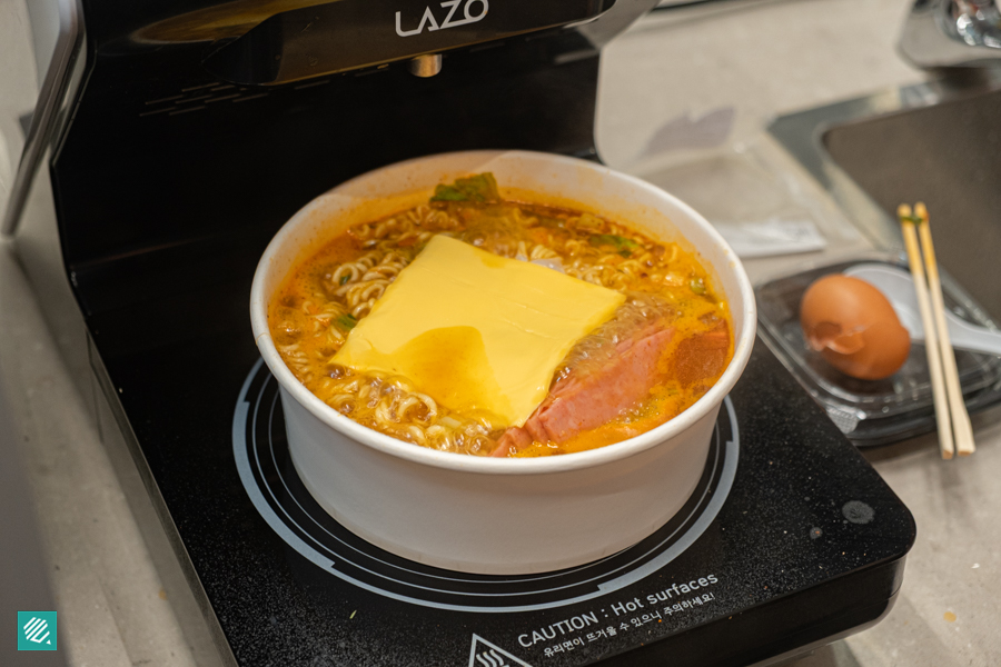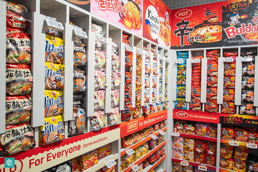 There’s also a ramen corner with ramen-cooking machines! The noodle selection has options like Shin Ramyeon, Buldak and many more.