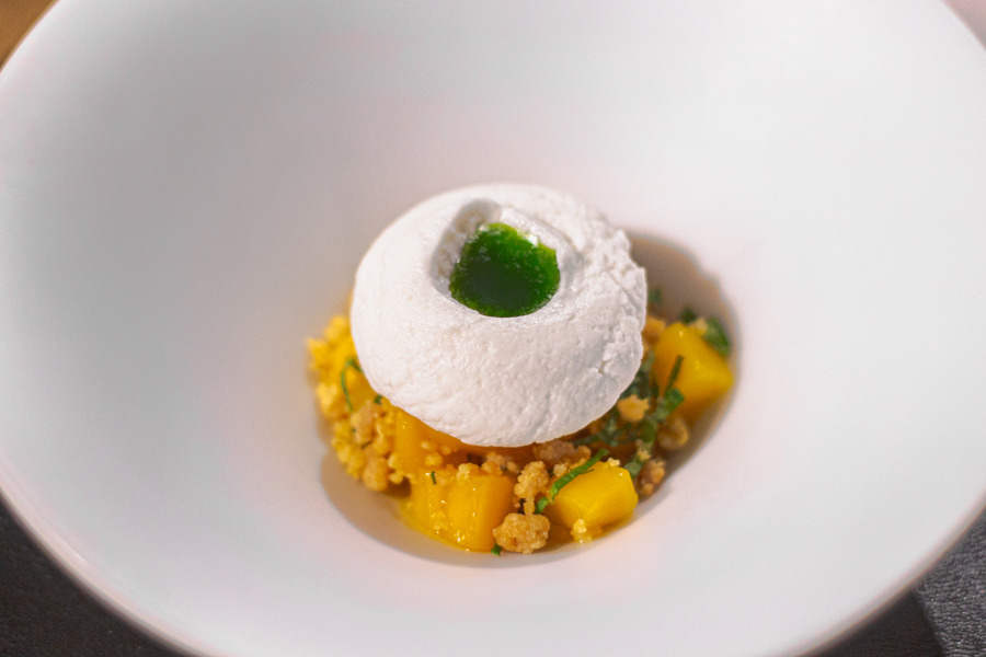 Before we ended the meal, Mango, a pre-dessert was served. Featuring fresh mangoes macerated with passionfruit, a scoop of sorbet in the middle, coconut cream, mint oil and some crumble. Oh my, each bite was a harmonious combination of tropical flavours.