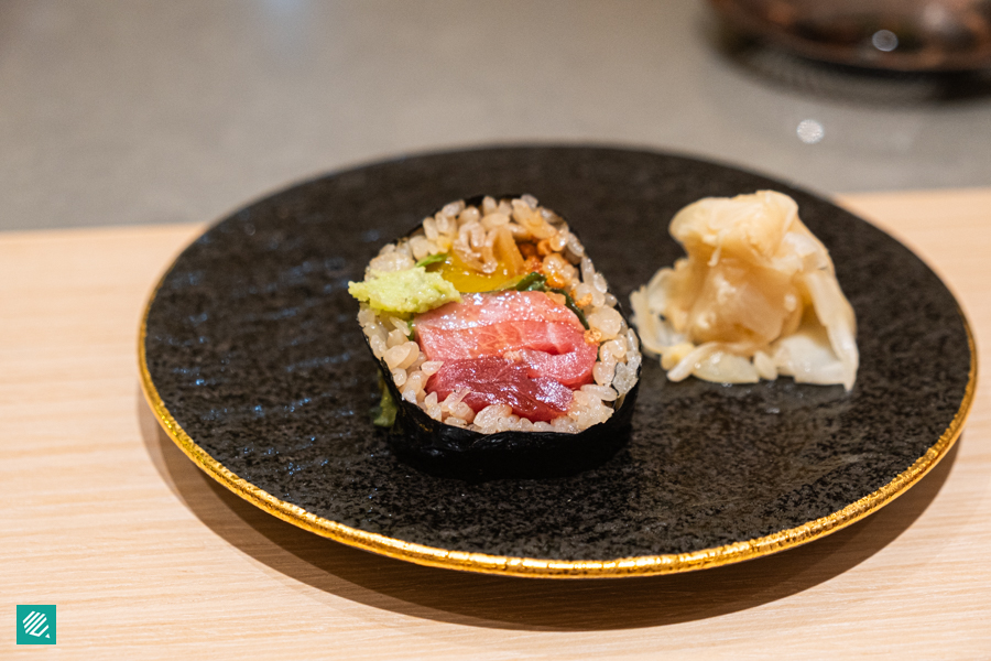 Our favourite was this Muni house roll, with 3 types of tuna, quail egg yolk, sisho leaf, and sushi rice cracker.
