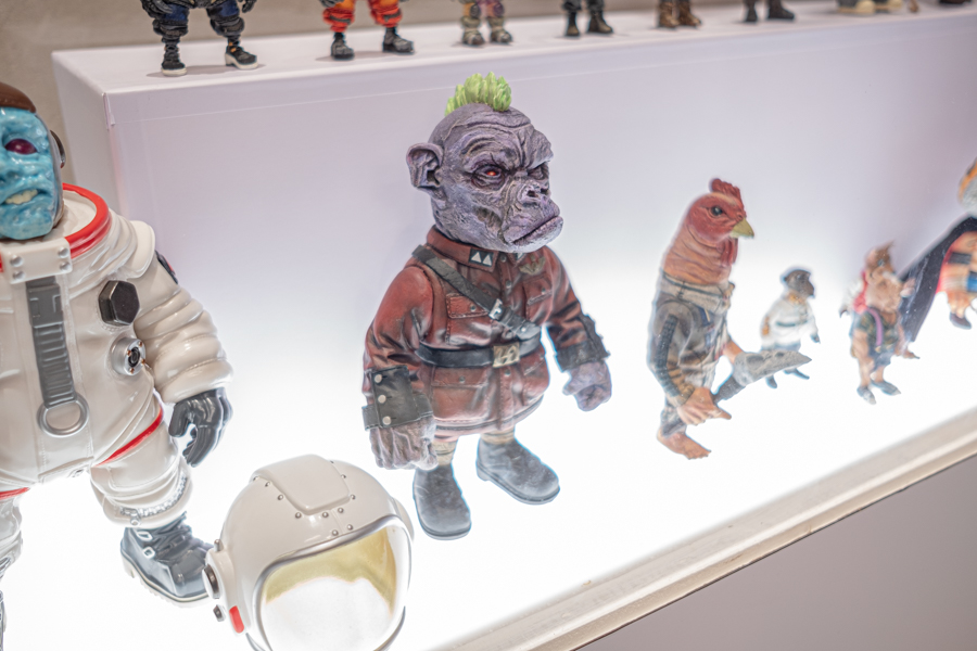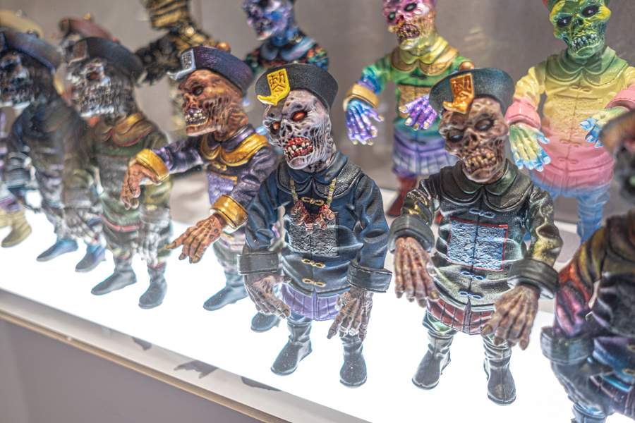 His works are heavily influenced by the horror genre, incorporating popular monsters like aliens, Frankenstein and most notably, Jiangshi – the Chinese iteration of a ‘zombie’. Being a quintessential pop culture trope that many of us recognise from the Hong Kong horror movies in the 70s to 90s, the Jiangshi is one of Daniel’s main muses for his work, hence the title of the exhibition. Daniel shared that a full piece can take anywhere from 10 days to a month, as he handcrafts and moulds each figurine by hand.