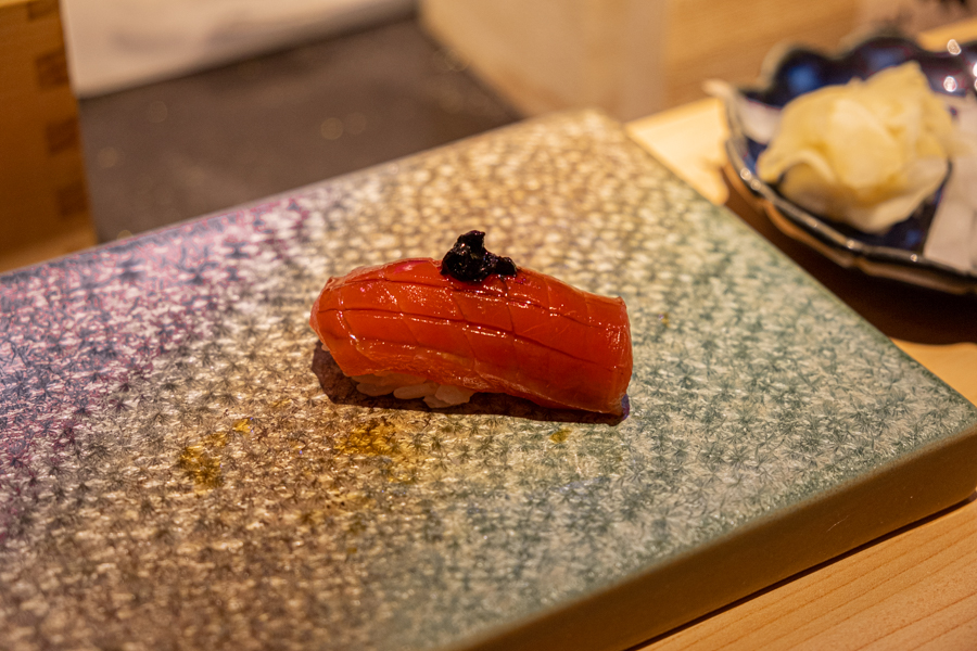 It started with Madai (red seabream) with sweet and firm flesh. One of our favourite bites was the Biwa Masu or Biwa Salmon.