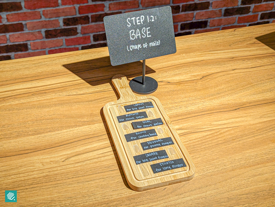 A lot of thought is put into making each step as easy to understand as possible. For example, there’s a placecard explaining which nail shapes fit each hand type and Grace personally walks through the entire process with each customer.