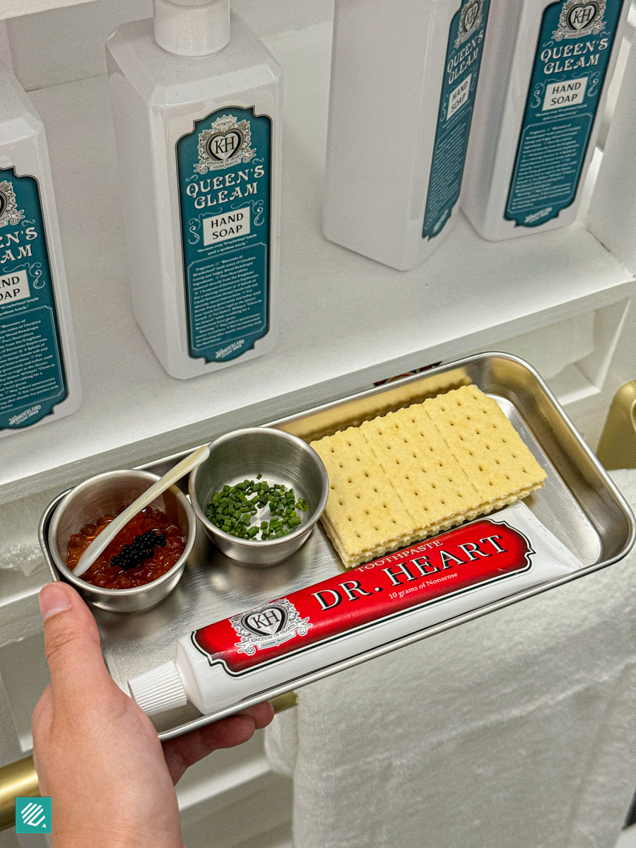 Not to worry because there’s no actual toothpaste. It’s sour cream cleverly packaged in toothpaste tubes, which you squeeze onto crackers!